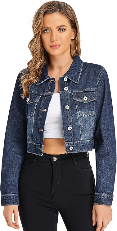 Cropped Denim Jacket for Women - Trucker Style Drop Shoulder Jean Jacket for Women Trendy - Perfect for EveryDay Outing