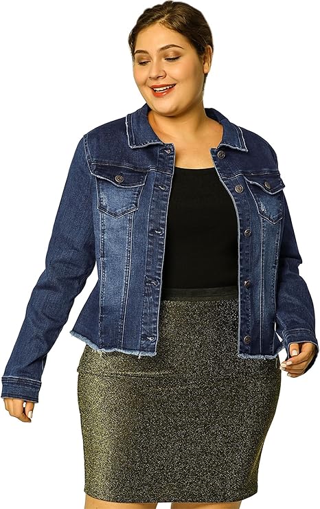 Women's Plus Size Classic Washed Front Frayed Denim Jacket