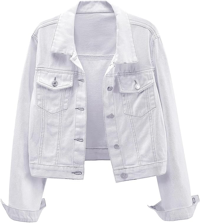 Cropped Jean Jacket for Women Long Sleeve Classic Casual Crop Top Denim Jackets Coat