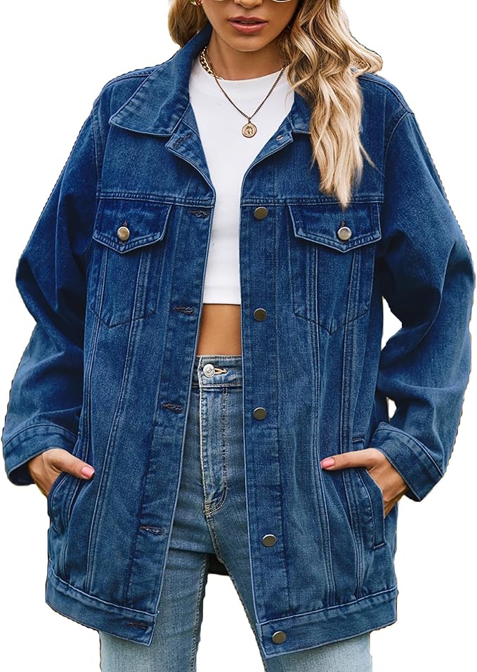 Denim Jacket for Women Button Up Long Sleeve with Pockets (Available in Inner Pockets)