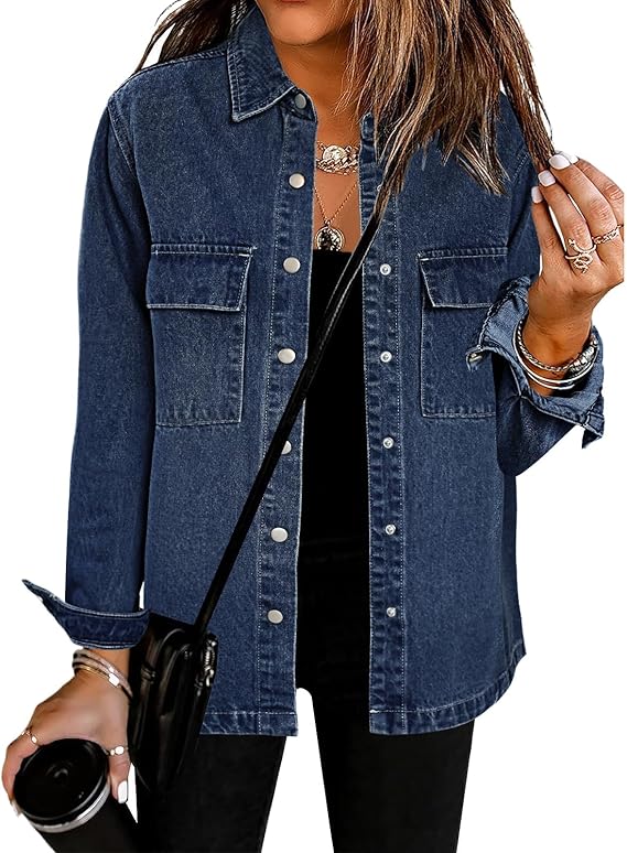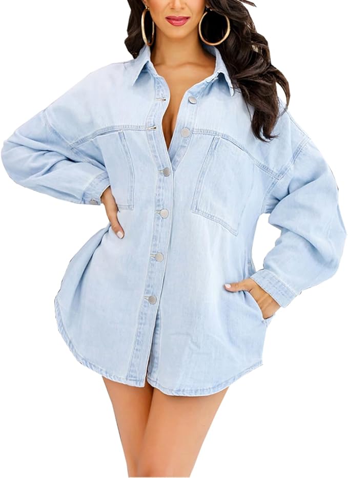 2024 Jean Jackets for Women Fashion Oversized Button Down Denim Jacket Western Fall Shacket Jacket with Pockets