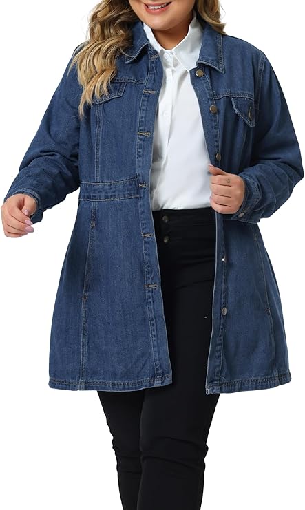 Plus Size Denim Jacket for Women Buttons Long Sleeve Jean Jackets